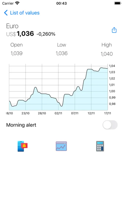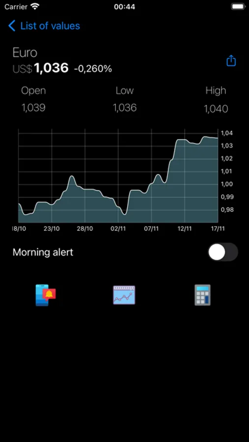 This app aims to facilitate the visualization of the value of the Dollar, Euro, Canadian Dollar, Pound, Japanese Yen, Swiss Franc and Australian Dollar, with graphics and allowing monitoring through notifications.