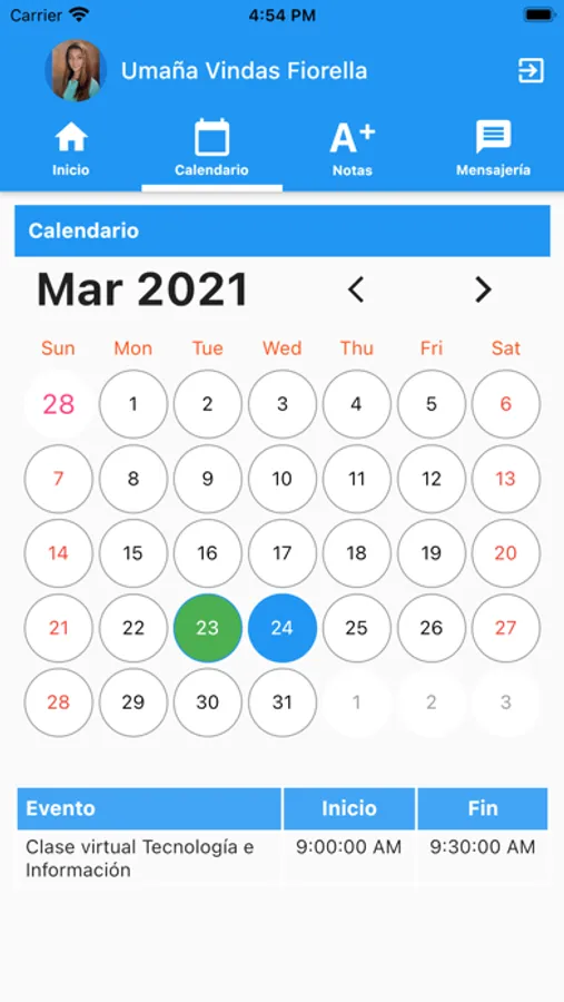 • Calendario: permite mantener informada a la población estudiantil, padres de familia y profesores sobre los eventos institucionales agendas, así como de los diferentes eventos y tareas que cada profesor puede crear para sus grupos asignados.