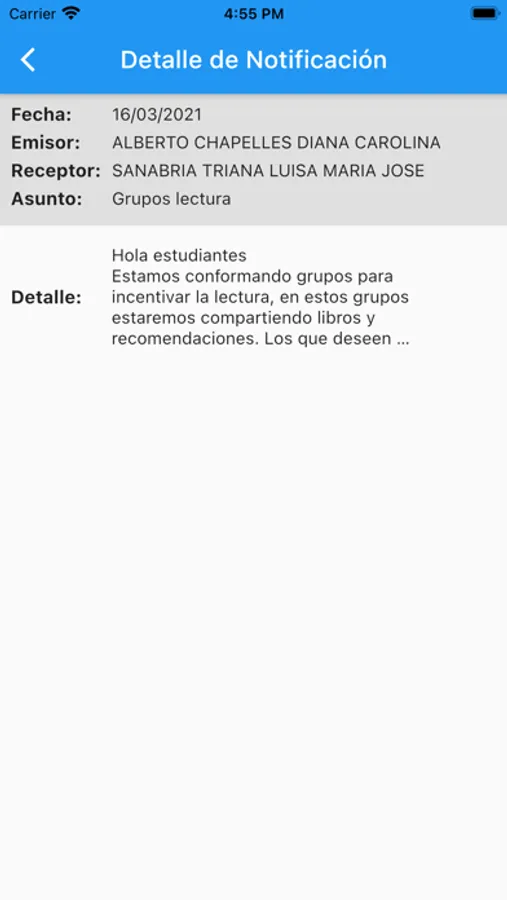 • Te mantendrá informado de eventos institucionales y tareas programadas por el profesor a cada estudiante.