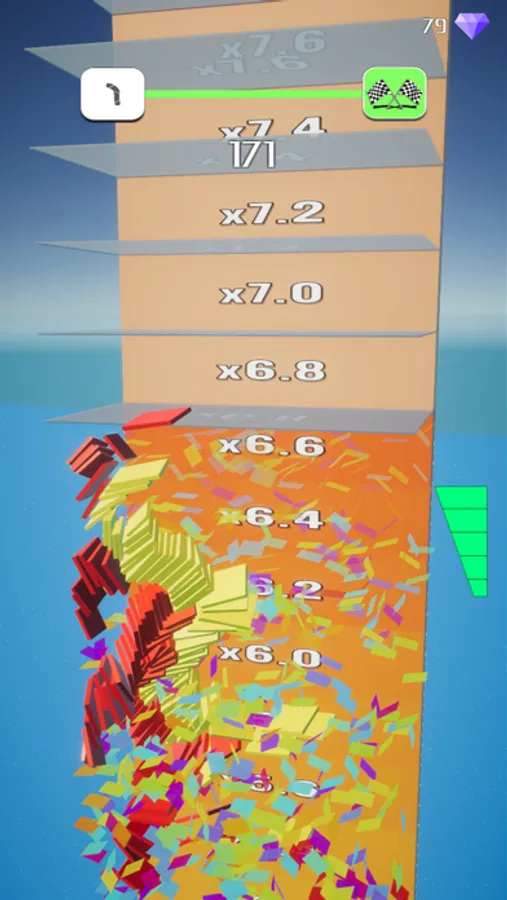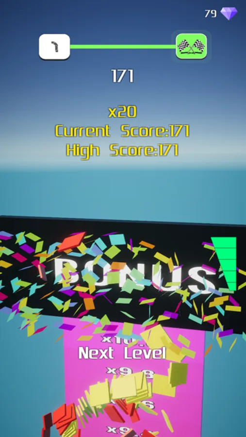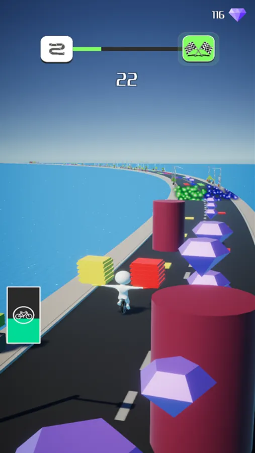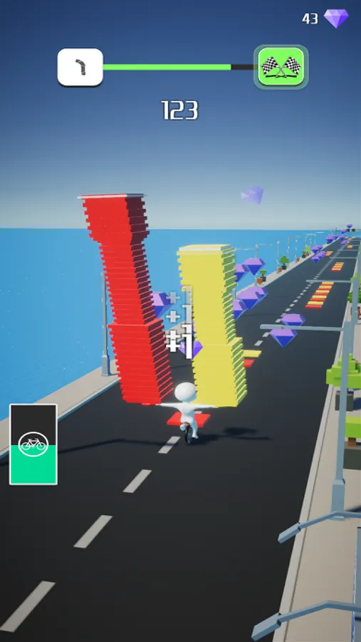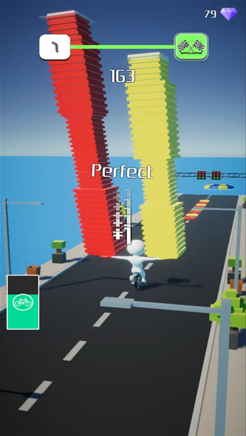 Move with a unicycle. Complete the road without hitting any obstacles. Collect objects that match the colors of your 2 hands on the way. Different colored objects do not exist in Fever mode. Collect all objects while in fever mode. At the end of the road, jump on the trampoline by pressing the screen continuously. If you reach a high compression score, the cubes will jump much higher. Earn a lot of points by pressing a lot.