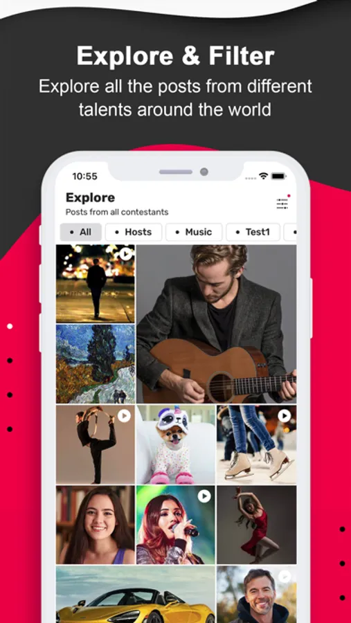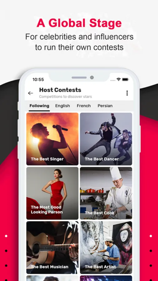 Contestants - Any talented person, anywhere in the world, can upload a short video of their talents to participate in different contests and get votes from people around the world. Winners are eligible to get prizes and monetize their skills.