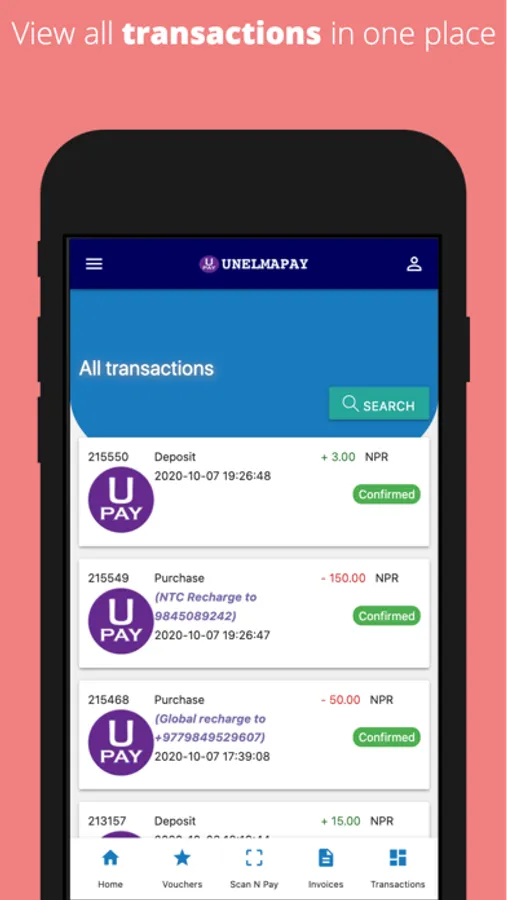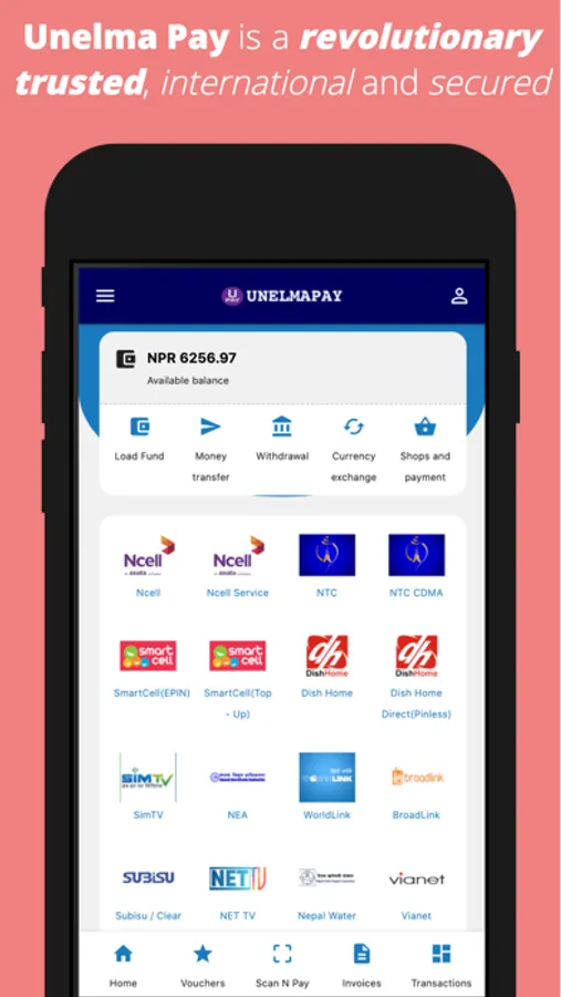 Users of UPay app can transfer funds from wallet to wallet. UPay (UnelmaPay.com) is not just a digital wallet; it is an entire payment ecosystem which allows users of UnelmaPay to send or receive funds from UnelmaPay friends, accepting payments through major third-party payment gateways such as PayPal, advCash, Perfect Money, Paytm, Payeer, ConnectIPS and local banks.