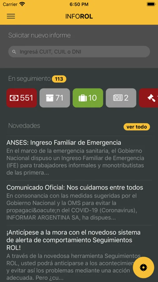 InfoROL ofrece la posibilidad de consultar personas y empresas a partir de la Razón Social, Apellido y Nombre, DNI o CUIT.