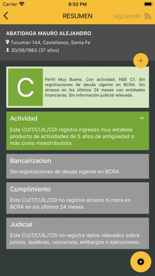 Perfil del consultado: Es un indicador que resume y pondera las principales características de las personas consultadas, según la información crediticia, comercial, fiscal y judicial disponible.