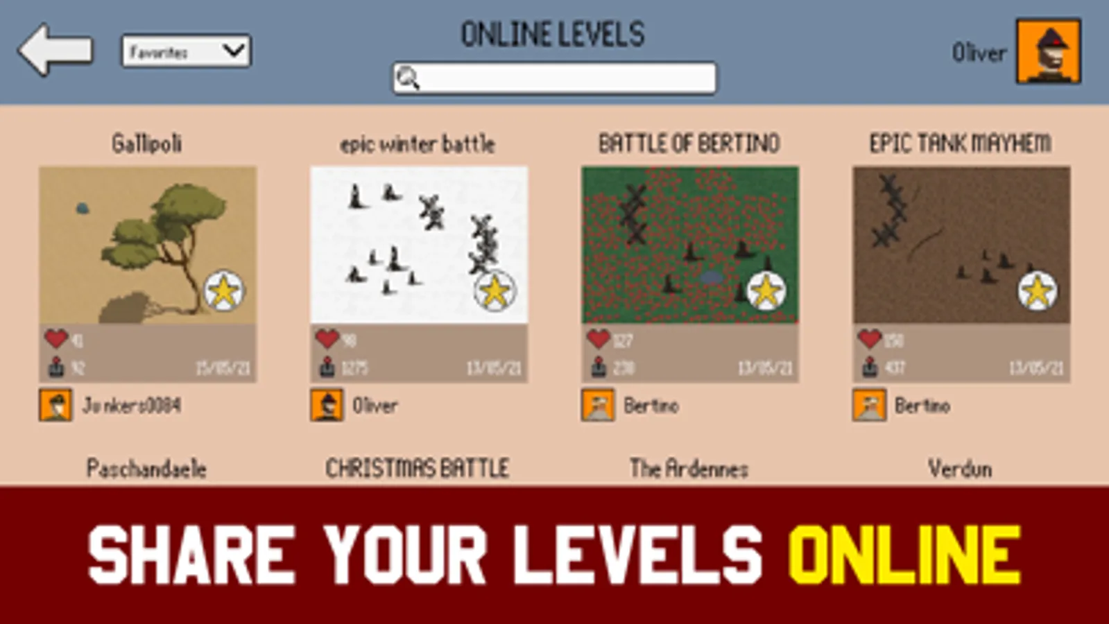 - Creative/sandbox mode - Create and design your own levels. Recreate historical WW1 battle scenes and select from a variety of maps and different weather. You can also try spawning 1.000 tanks or flamethrowers and defeat the enemy on INSANE mode for a total war.