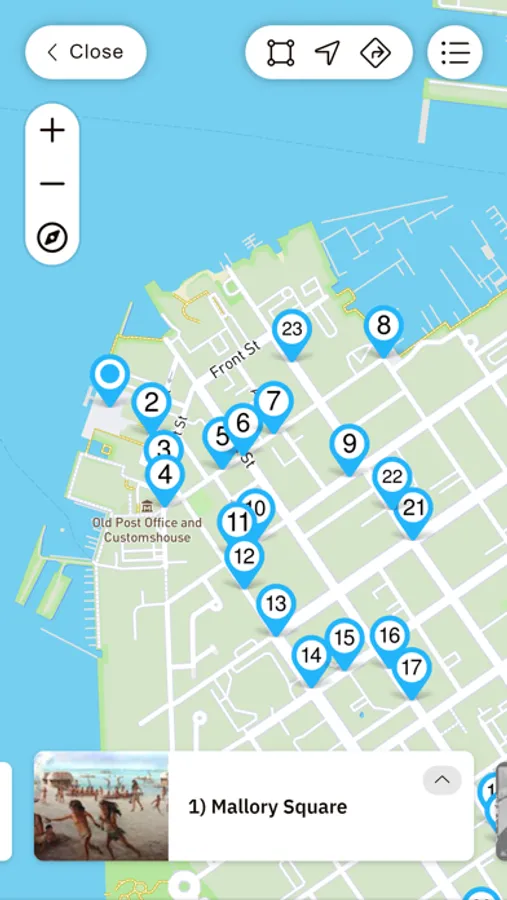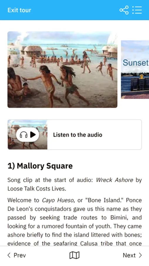 Simply click on the alert to read about each spot, view historic photos and videos and get links to websites and restaurant menus. Or, enable audio narration that starts automatically at each location. Or, use the tours like a travel guide by clicking points on the map, getting to know the area before you visit.