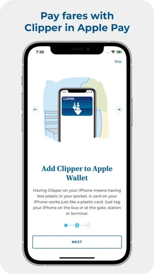 The Clipper app gives you step-by-step instructions for setting up a new Clipper card or transferring an existing Clipper card to your Apple Wallet.