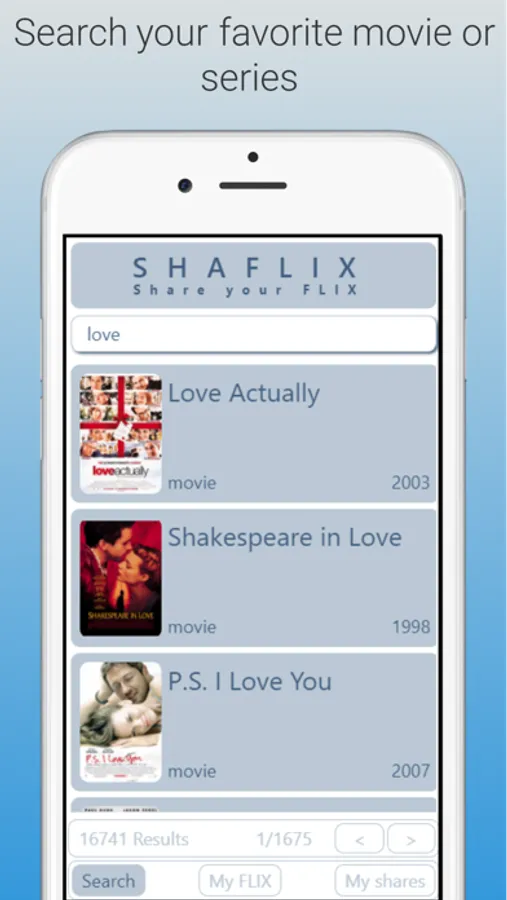 Search thousands of movies and TV series, save them to remember what you are watching and share them with your friends & family!