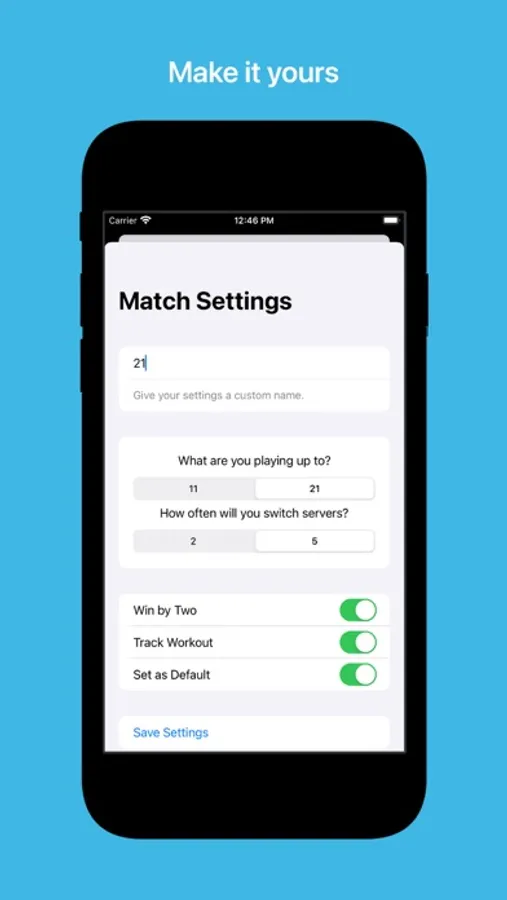 TopSpin is a dedicated Table Tennis score tracker. Simply increment the score through each rally. TopSpin will keep the score, tell you who is serving, and remind you that it's match point! Want to up your game? TopSpin also records workouts during your match. Take advantage of advanced tracking with the Apple Watch and close your rings!