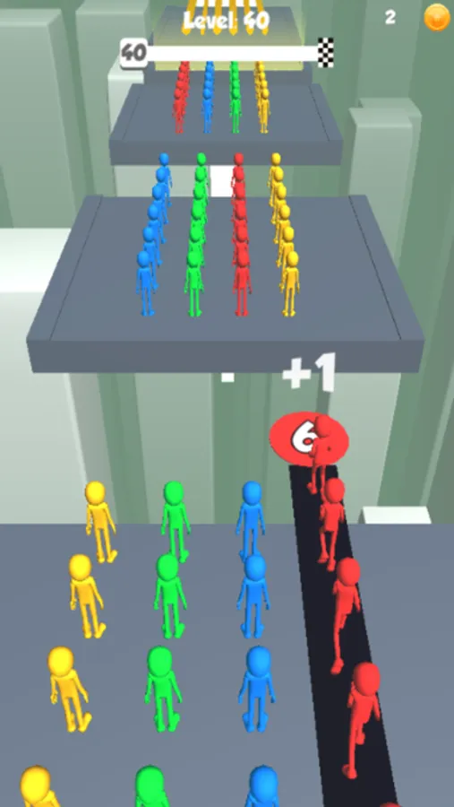 Build your road and control where your player goes,Timing is everything so make sure to watch where you’re going to avoid obstacles and collect as many players as possible with the samecolor as you, and collect as many coins as you can.players climb on the other and create a road and try to access the castle