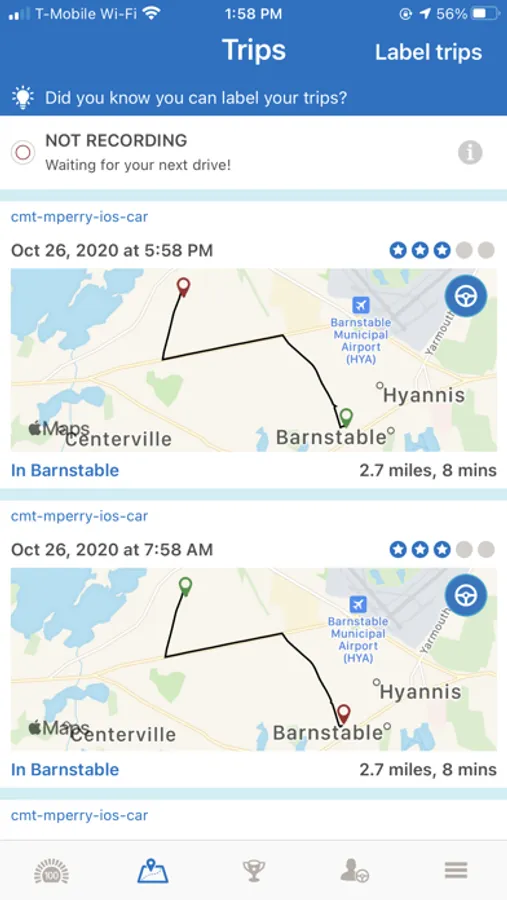 After pairing with the tag has been completed, this app will automatically detect when you begin driving. You’ll be able to see things such as: