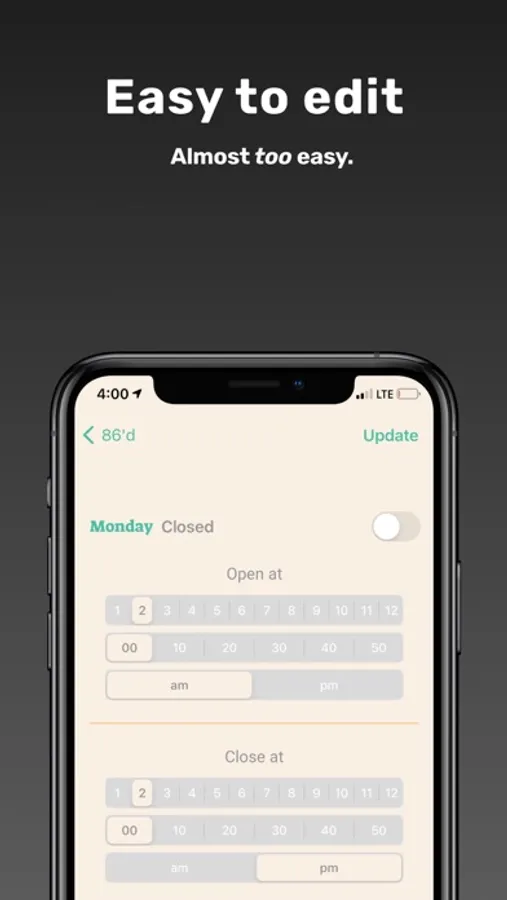 With an easy to use back end, restaurants can onboard and be active on 86’d in as little as 5 minutes, and then you can 86 that damn phone line. No sign-up is required for customers and your restaurant can be easily found. That’s right, we’re not looking to collect and sell anyone’s data, we’re just looking to make information more accessible.