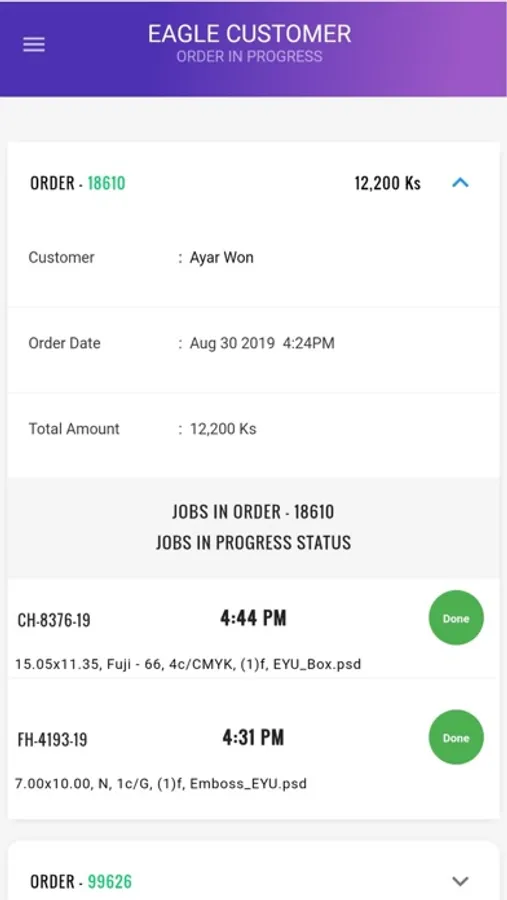 Mobile application for Eagle CTP and Film customers. Customers can check the progress of their orders, their payment histories, comparisons and so much more. Furthermore, they can reorder their old orders again.
