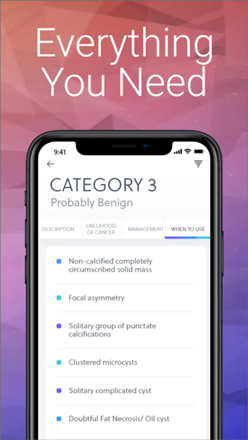 · Learn about the various categories in a user friendly and intuitive manner. Get access to Detailed description, Likelihood of malignancy, Management and When to Use scenarios for each category.