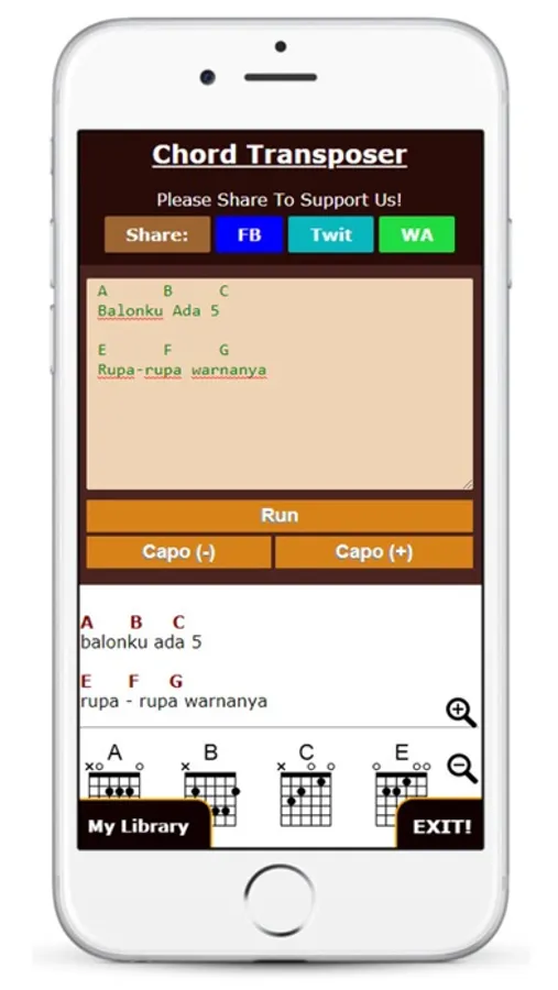 Guitar Chord Transposer Simple and Manager is a free and easy way to transpose guitar chords. Simply enter your chords and lyric of song & transpose chords! it's like a magic!!! Transpose Guitar Chords and Tabs Instantly - Now you can transpose guitar tablature chords, change guitar tablature keys, and transpose guitar tabs every where any where and play it later OFFLINE!