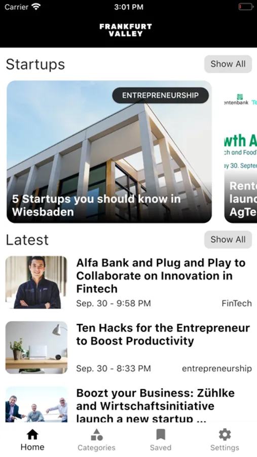 Frankfurt Valley™ is a central platform to discover and interact with Hessen´s startups, corporates, investors, policymakers, and other meaningful organizations. Frankfurt Valley’s mission is “to enable and foster bi-directional innovation bridges between startup ecosystems globally from and to Frankfurt.”