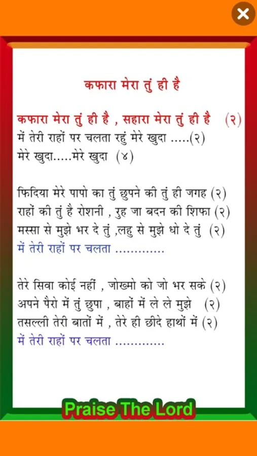 Offline 100 Hindi Christian Songs and lyrics available in this app.