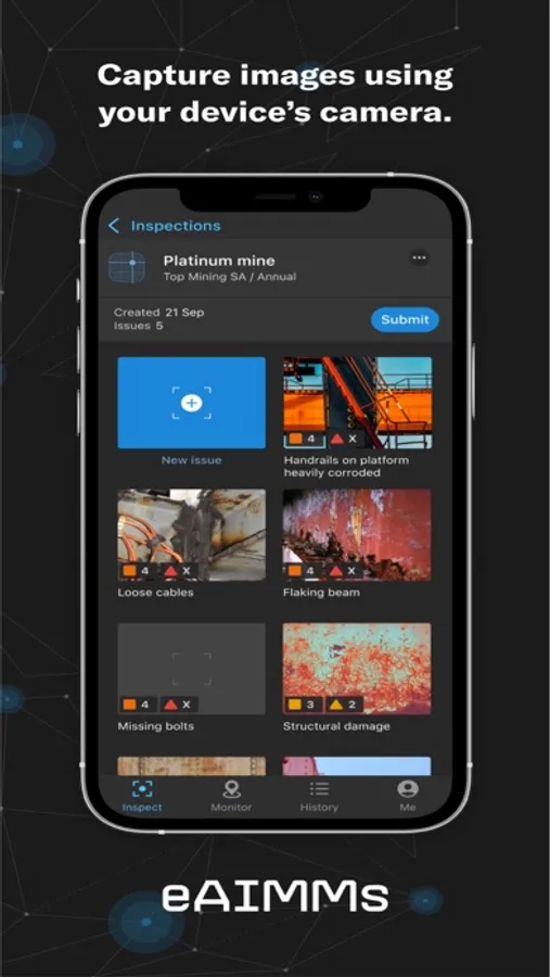 eAIMMs is a centralised mining inspection tool aimed at structural integrity inspections across Shafts, Ships, Plants, Pipes, and Heavy Mobile Equipment.