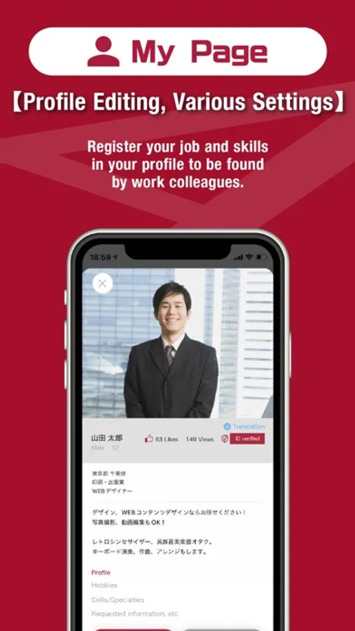 You can register your occupation and skills on ""My Page"" to appeal to other members.