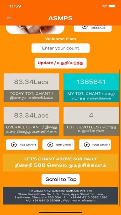 iPhone app for Kanchi periyava devotees to register their Chants. I makes easy for an user to register their chants and update their daily chants. Users can also see total daily chants