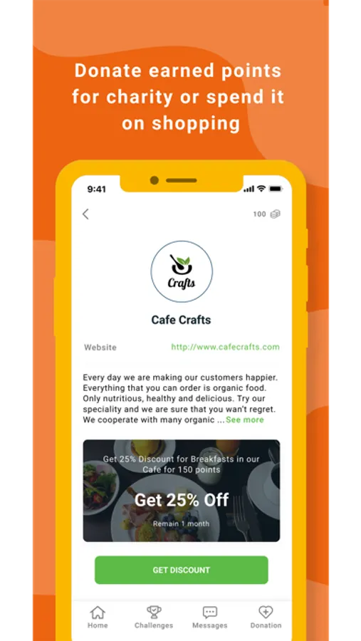 • You earn points that you can exchange for discounts, experiences and services • You can donate your points to charity