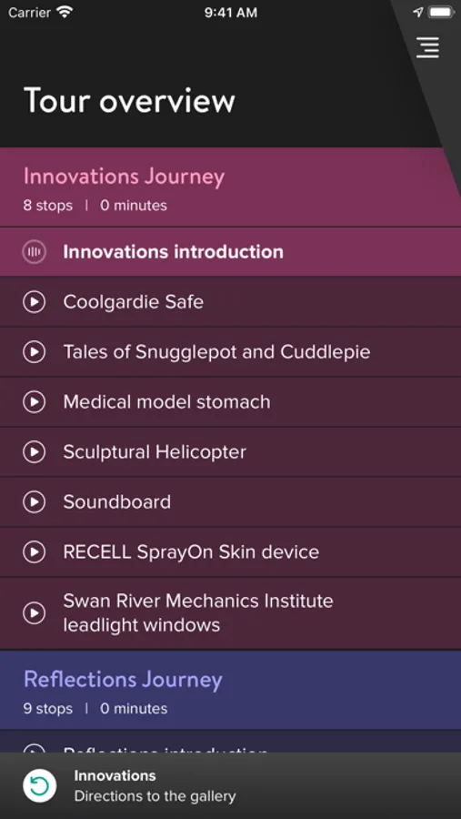 Gogo, named after Western Australia’s State Fossil Emblem, uses Bluetooth location awareness to guide you through galleries on a linear tour, viewing extra content about important Hero objects with crafted narrative audio elements, or allowing you to gravitate towards what interests you most, showing you which objects you can ‘Deep Dive’ into further in your current location.