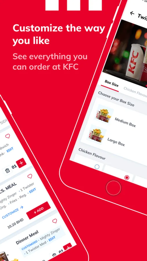 The all new KFC Bahrain App is the fastest way to order your favorite KFC fried chicken online. Ordering food online within a few clicks has never been so easy. Pick up the food or get it delivered at your doorstep, in just a few taps from the latest KFC online food ordering app!