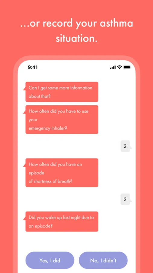 (For asthma) Did you have to use your inhaler yesterday or did you wake up due to an episode of shortness of breath?