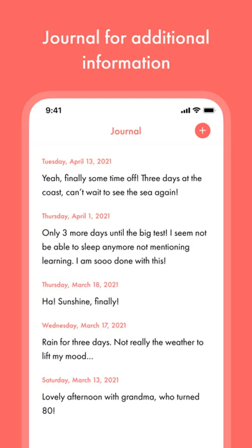 Visualize your situation on a daily basis, see trends and discover correlations between your wellbeing and other factors.