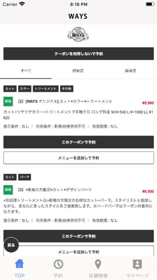 お得なクーポンが配信されます。ネット予約時にクーポン利用での予約も可能なので来店時もスムーズに施術頂けます。
