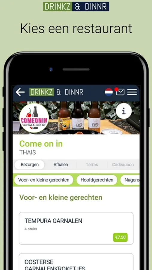 Met Drinkz & Dinnr bestel je eenvoudig bij jouw favoriete horeca. Of het nu gaat om afhalen, bezorgen of live bestellen... Voor jou als besteller is de app uiteraard helemaal gratis. En dankzij de lage tarieven is de app bovendien zerer horeca-vriendelijk!