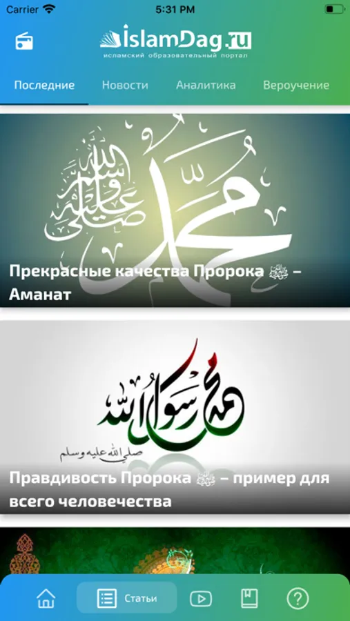 Официальное приложение портала IslamDag в AppStore. В приложении для вашего удобства мы разместили самые актуальные новости и статьи, а также видео с проповедями богословов. Кроме того, вы сможете слушать онлайн-радио,читать книги в нашей библиотеке и задать вопрос имаму.