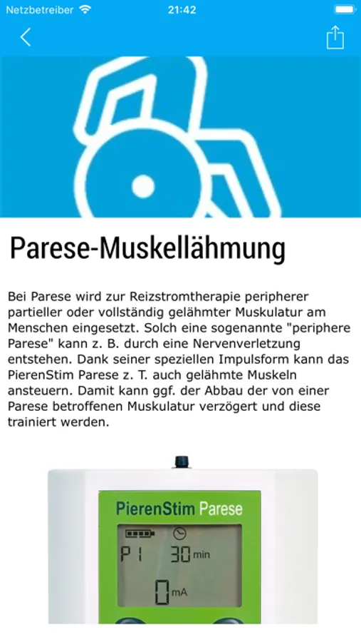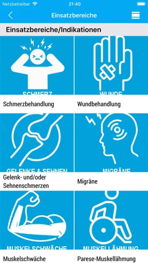 Direkter und aktueller Zugriff auf den Bereich ANWENDUNG, von überall. Dort finden Sie Anwendungsfilme und Illustrationen sowohl zum korrekten Platzieren der Elektroden. Darüber hinaus die Inbetriebnahme und Programmauswahl- und durchführung.