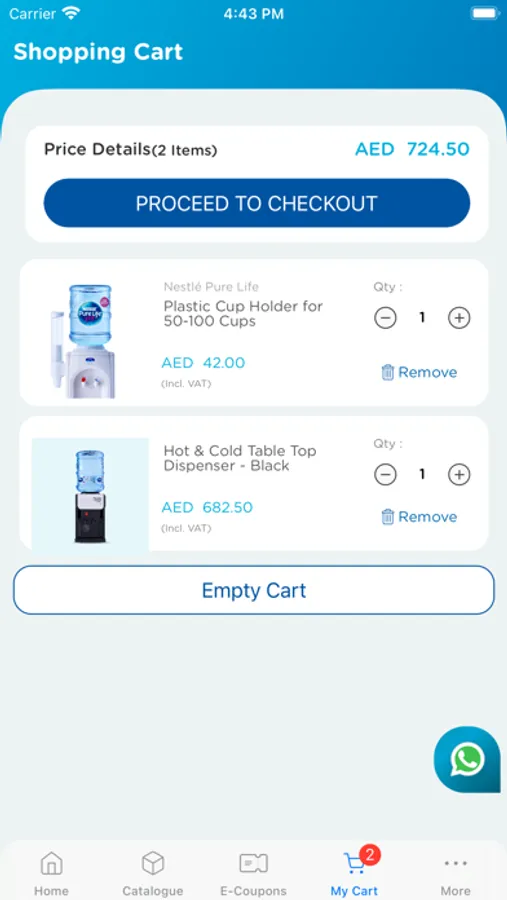Add Pure Life water bottles, gallons, coolers & water dispensers to your cart and checkout using your desired payment method.