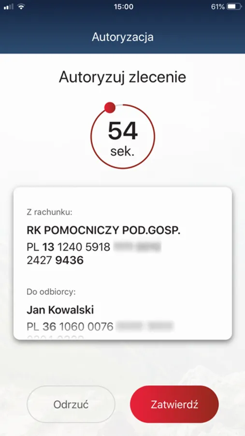 Autoryzacja wymaga akceptacji numerem PIN ustanawianym podczas aktywacji. Możesz również ustawić logowanie do Tokena Mobilnego za pomocą metod biometrycznych.