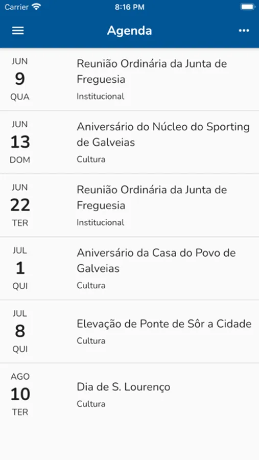 Disponibiliza as últimas notícias e uma agenda de eventos, consultáveis sem ligação à Internet. Dá acesso aos serviços da junta, à rede escolar, ao associativismo e a documentos oficiais.