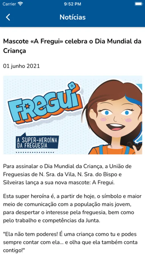 A aplicação procura promover a proximidade entre os cidadãos e a União de Freguesia de Nossa Senhora da Vila, Nossa Senhora do Bispo e Silveiras, divulgando atividades e procurando manter os fregueses informados.