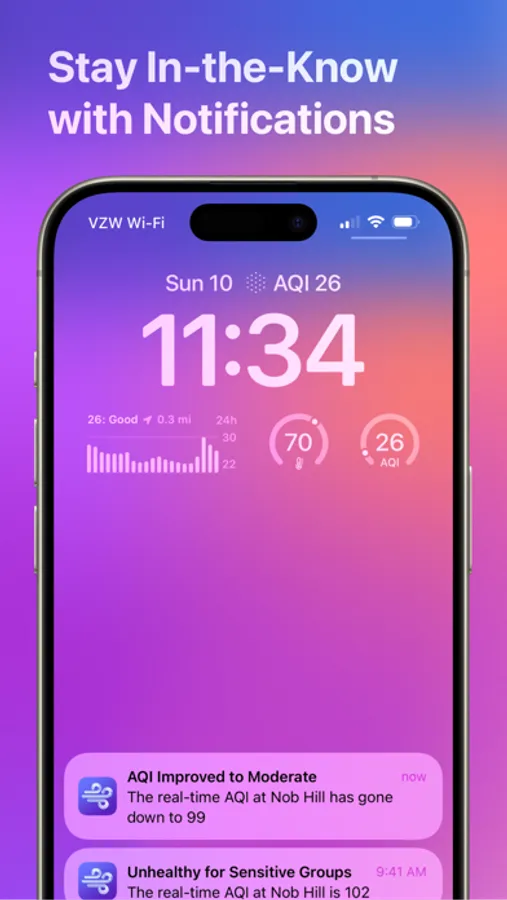 View real-time air quality index and how it’s trending in the Dynamic Island and on the Lock Screen with Live Activities.