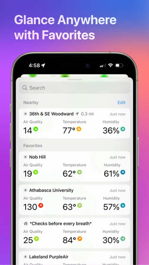 Configure widgets to show you the nearest sensor, any public sensor, or your own private sensor. Widgets are available for your Home Screen, Lock Screen, Apple Watch, and Mac Desktop.