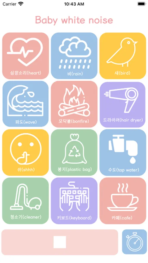 아기가 칭얼거리거나 울때 진정시키는 효과가 있는 백색 소음 앱입니다. 그리고 아기를 재울 때도 효과적입니다. 아기 뿐만 아니라 성인도 잠을 자거나 작업을 할 때 들어도 좋습니다.
