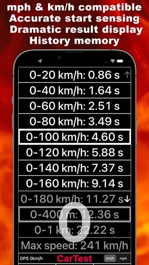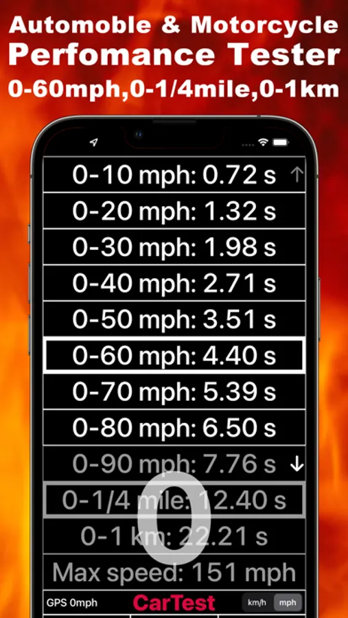 You can easily measure times such as 0-60 mph, 0-1/4 mile by CarTest.
