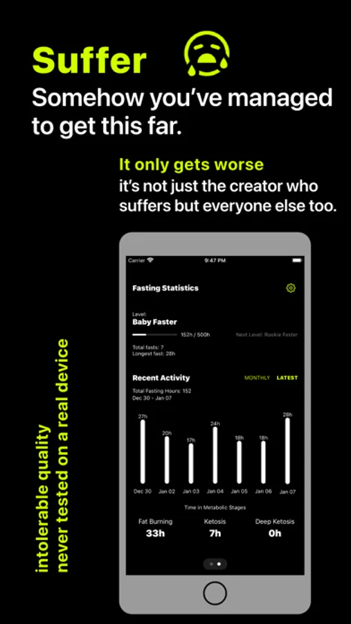 STATISTICS - Chart your progress and see how you improve your fasting practice from day to day.