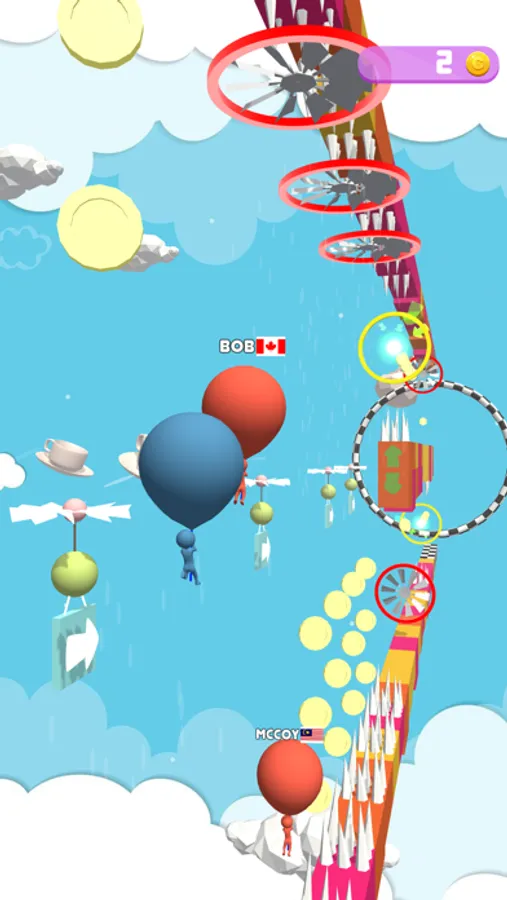 Reach for the finish line of the cloud tracks navigating your trusty balloon. Try to be the first. Bump down other players balloons during the race and and avoid being bump down yourself. Have fun playing this colorful sky race.