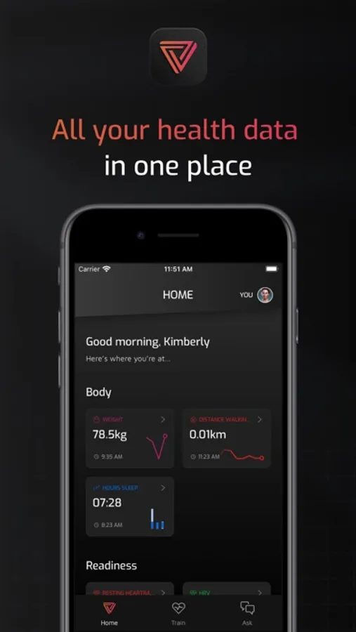 We’ll combine our exercises into workouts and a fitness program we create just for you and your goals. It will adapt to your needs and progress as you improve and grow. And with HealthKit integration your health data is used to get a clear, visual representation of your progress.