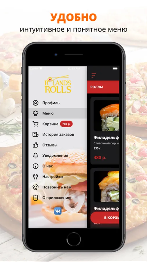 Воспользуйтесь удобным приложением для заказа еды от «Rolands Rolls». Аппетитные роллы, суши, пицца - теперь с доставкой по г. Балашиха!