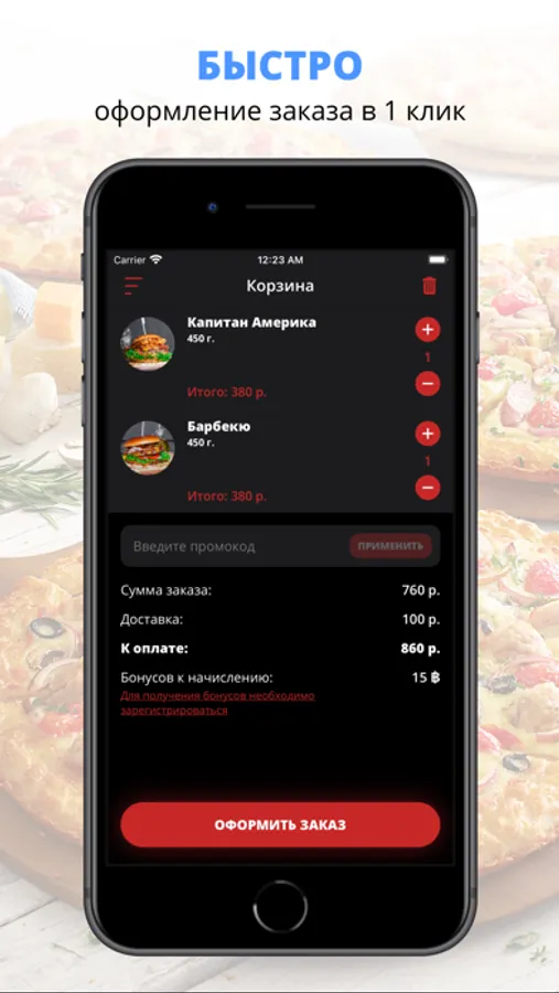 Заказывайте ваши любимые блюда у нас, и Вы останетесь довольны качеством сервиса. У нас работают опытные повара, а курьеры приятно порадуют вежливостью и быстрой доставкой.