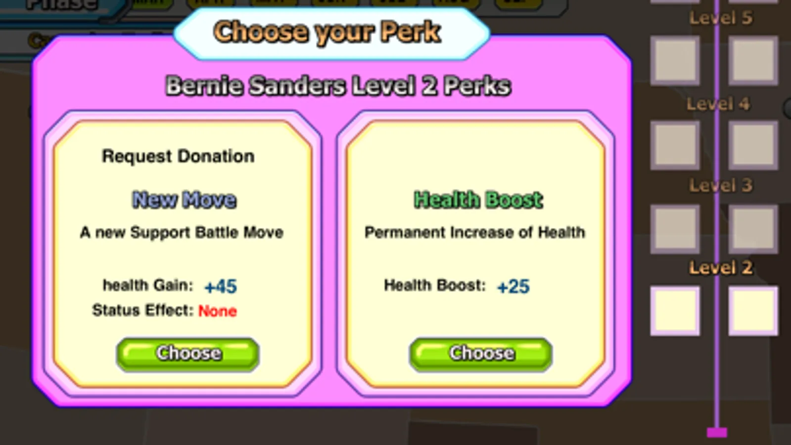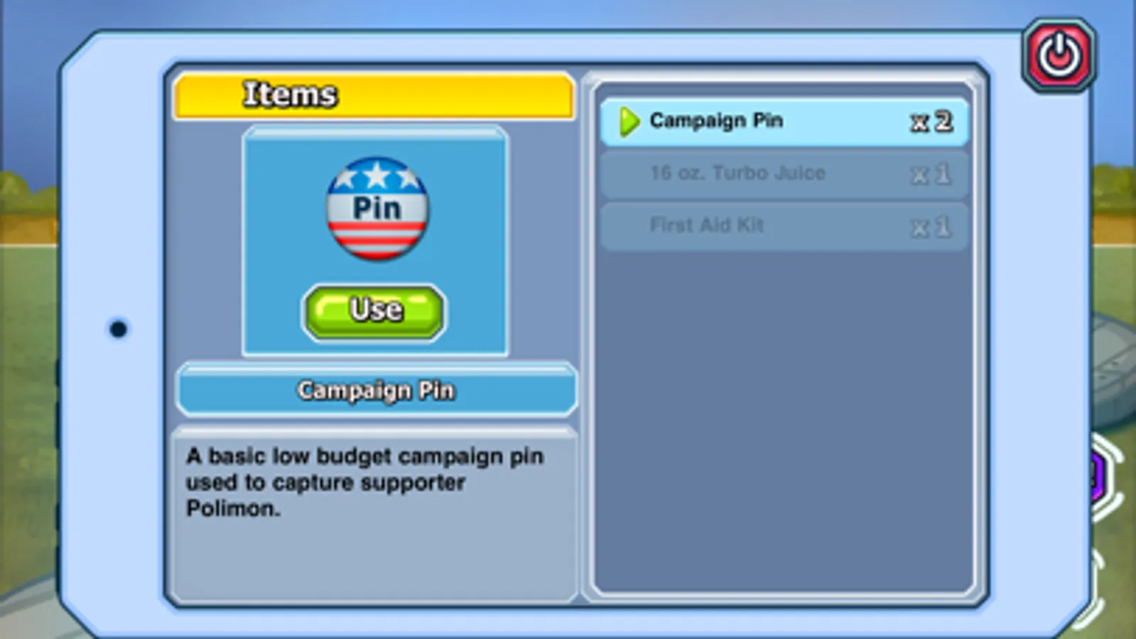 Polimon, a funny turn-based game that is a unique gameplay mashup featuring U.S. politicians. Take control of your own Political Monster, gaining supporters, smiting your enemies, and draining your donors as you battle and strategize your way to the White House.