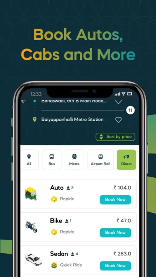 Book Autos, Bike Taxis and Cabs (Availability depends on city)