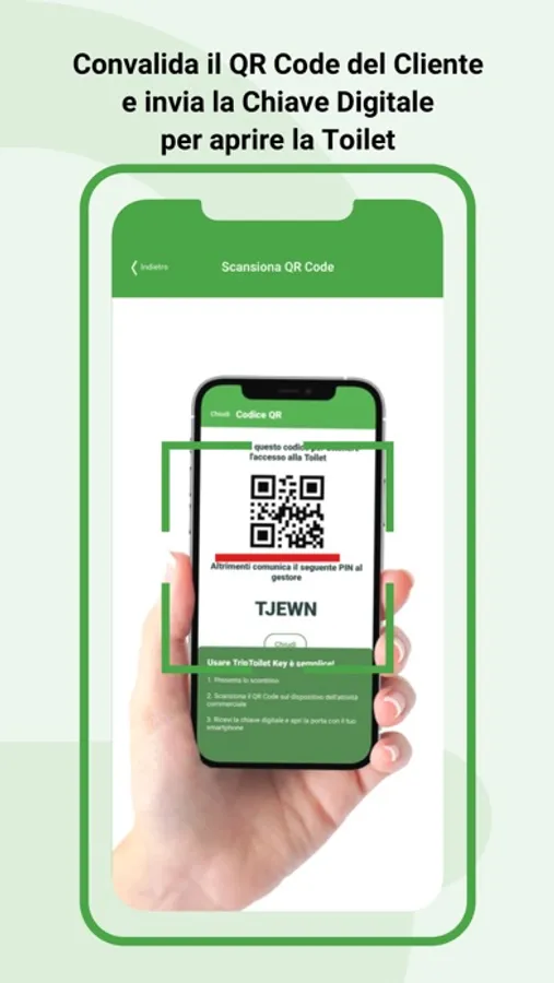 L’applicazione consente di gestire il Check-in dei Clienti che vogliono utilizzare la vostra Toilet.
