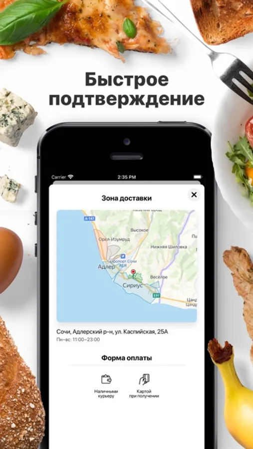 — Быстрый заказ с мгновенным подтверждением через приложение.